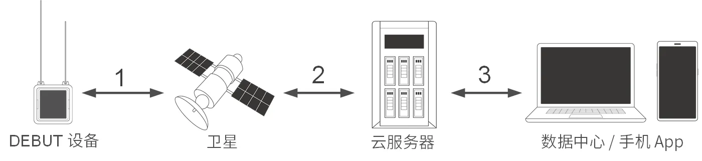 设备与卫星之间的传输是单向的,只允许数据从设备传输到卫星,而不能反向传输。
