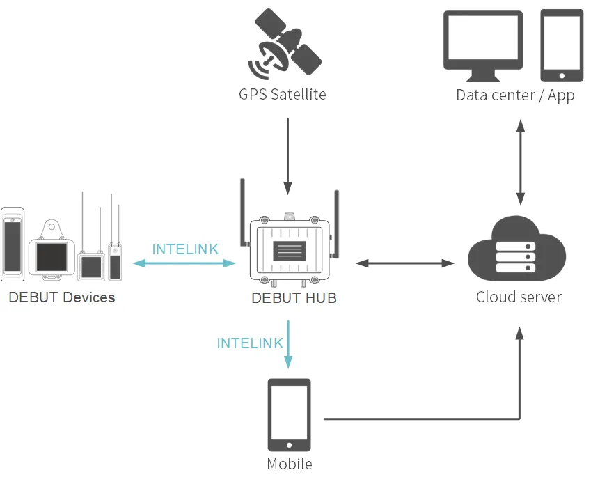 HUB 作为智能网关管理其他 DEBUT 设备,可按照设置好的时间间隔收集并上传其他 DEBUT 设备采集的数据,修改设备配置等。- 数据下载