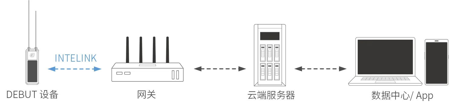 网关为 DEBUT 系列非蜂窝类型的设备提供网络连接中继通道,能够基于 INTELINK 技术获取设备所采集的数据并通过网络上传至云端服务器。