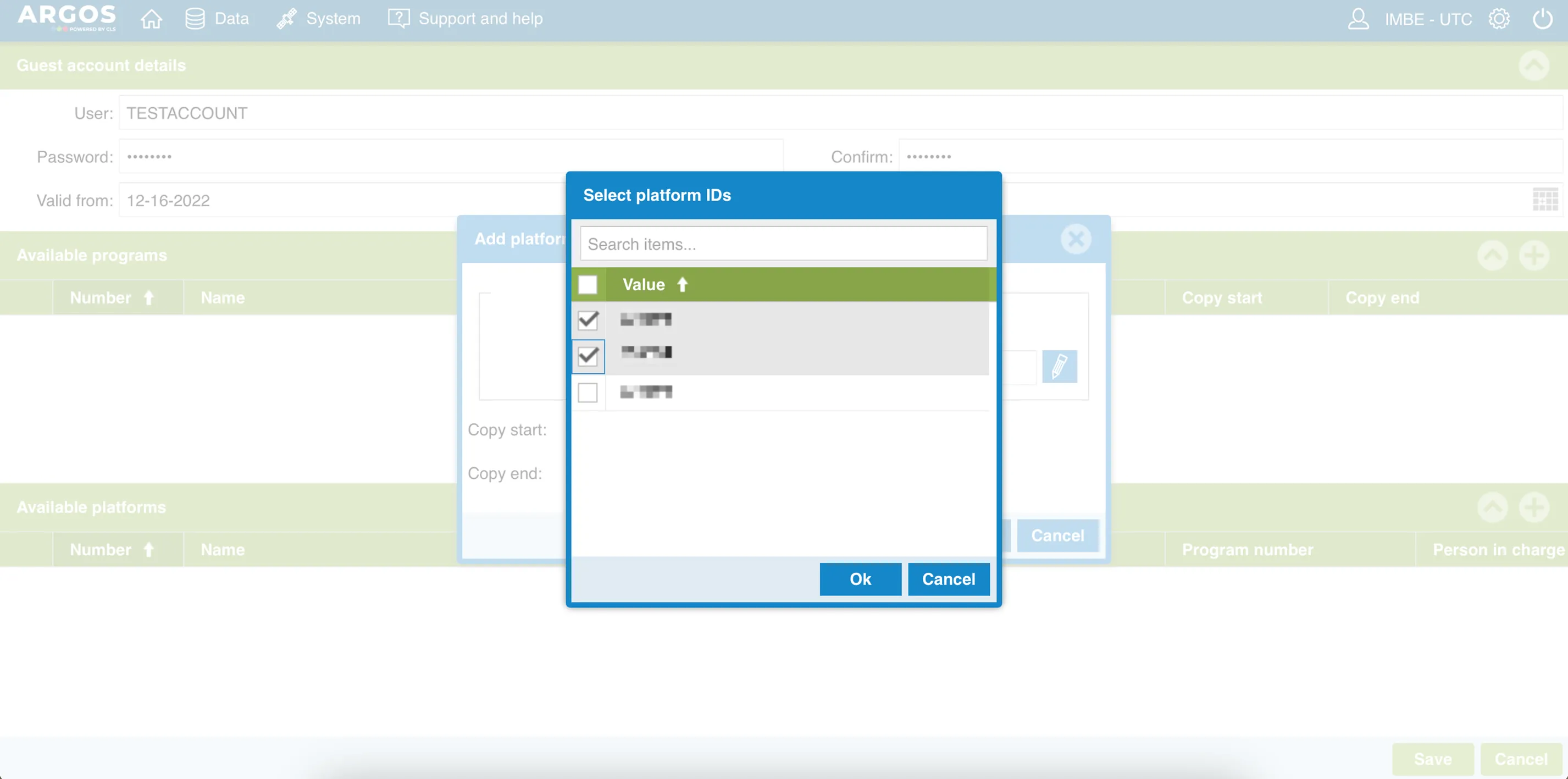 As most users will use their Argos IDs for different projects, we recommend that you create a guest account for each project and allocate the required quantity of IDs into this guest account.