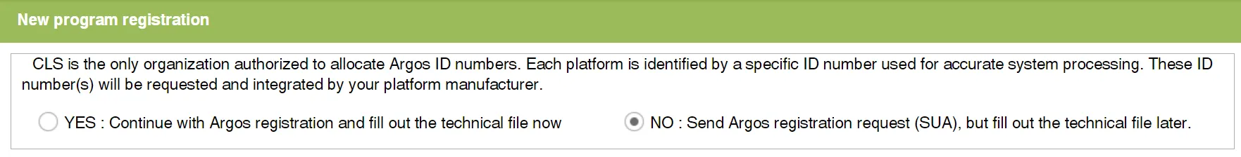 CLS is the only organization authorized to allocate Argos ID numbers. Each platform is identified by a specific ID number used for accurate system processing. These ID number(s) will be requested and integrated by your platform manufacturer.