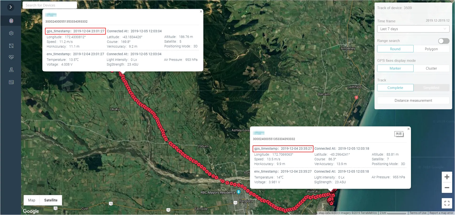 When BOOST is triggered, you can get much more GNSS fixes than usual. More GNSS fixes can bring more detailed reflection on the animal behaviour. With other collected data, you can get a more accurate profile for your study object. The illustration below shows the movement track of a bird in 30 minutes. This bird was deployed with DEBUT LEGO. When BOOST is on, LEGO collects more than 100 GNSS fixes in 30 minutes.