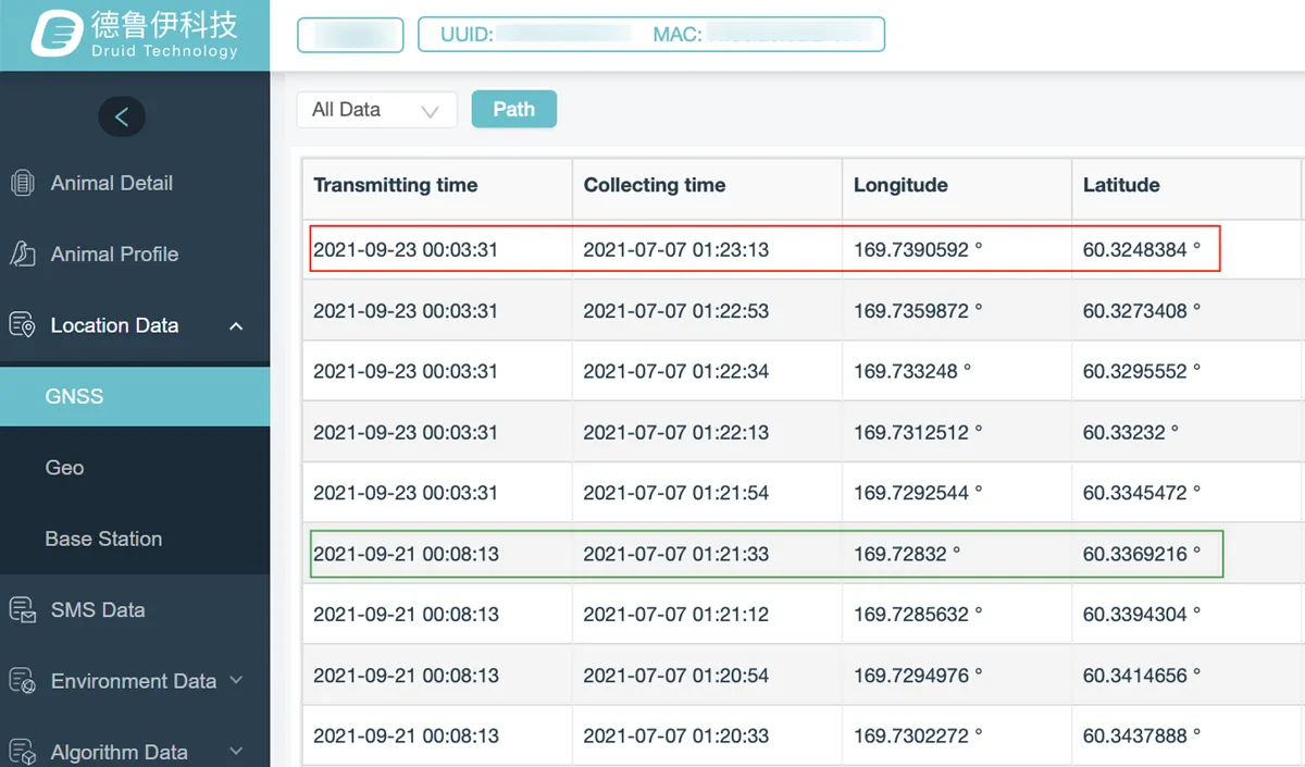 Note: If you need to see all GNSS fixes of a device in a map, you can export the data to KML format and open it with Google Earth.