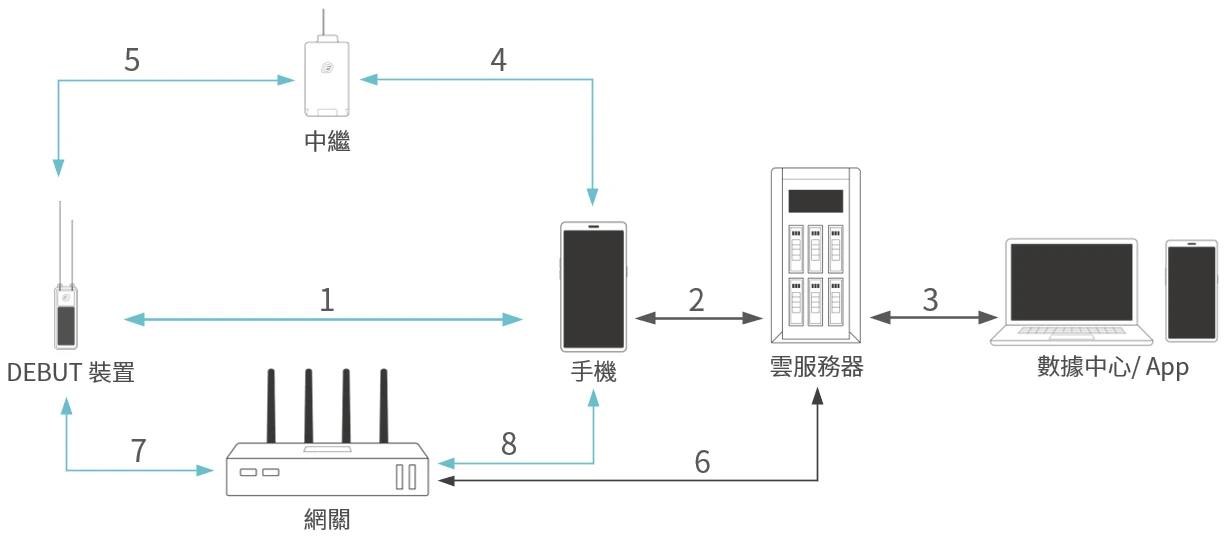 所有德魯伊科技裝置型號均具備 INTELINK 傳輸功能。因此,本文討論的所有型號,包括蜂窩網路型號和衛星通信型號,都適用於此係統架構。