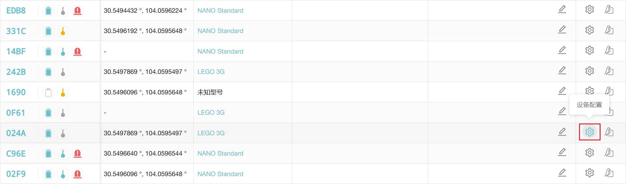 在列表中找到需要修改配置的裝置,然後在右側單擊 圖標進入裝置配置頁面。