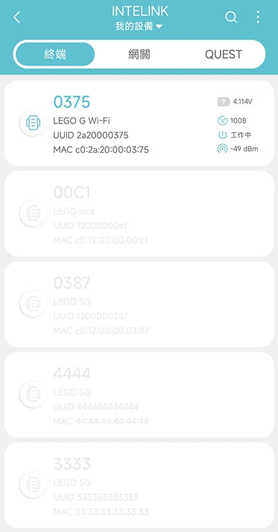 App 開始掃描附近的裝置。被掃描到的裝置會在裝置列表中高亮顯示,沒有被掃描到的裝置則會置灰。