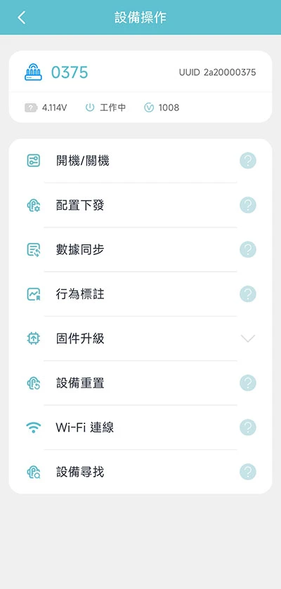 App 會自動連接到裝置進行開機操作。裝置開機後,您必須將配置下發到您的裝置。在初始化裝置時,配置下發是非常重要的一個步驟。通過下發配置,裝置可以獲取到最適合的針對不同子型號的配置。在有網路連接時,App 會從雲端服務器獲取配置並進行配置下發。沒有網路連接時,App 會使用您快取到手機的配置。