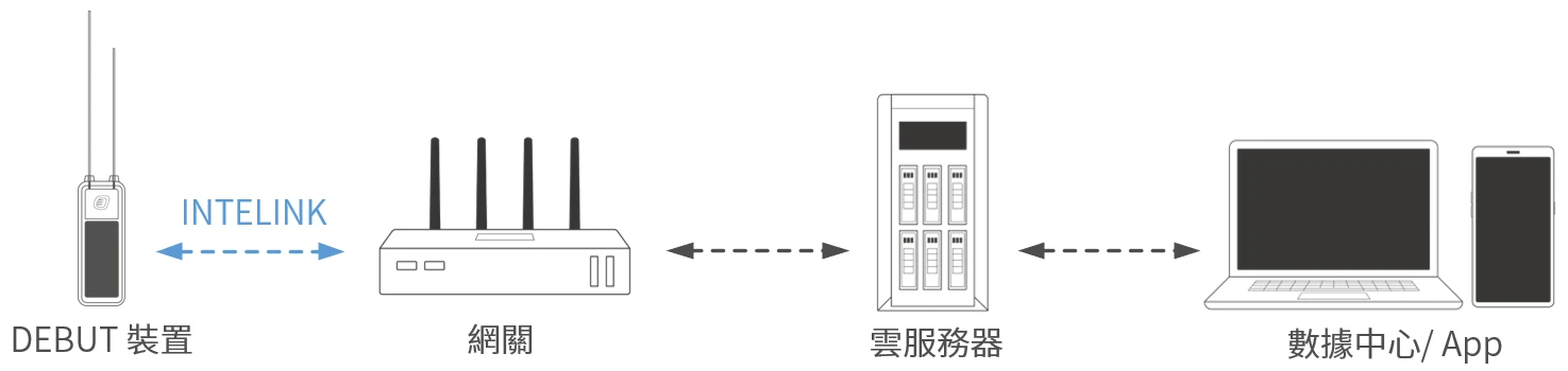 下圖為 INTELINK 通信類 DEBUT 裝置的工作原理示意圖。